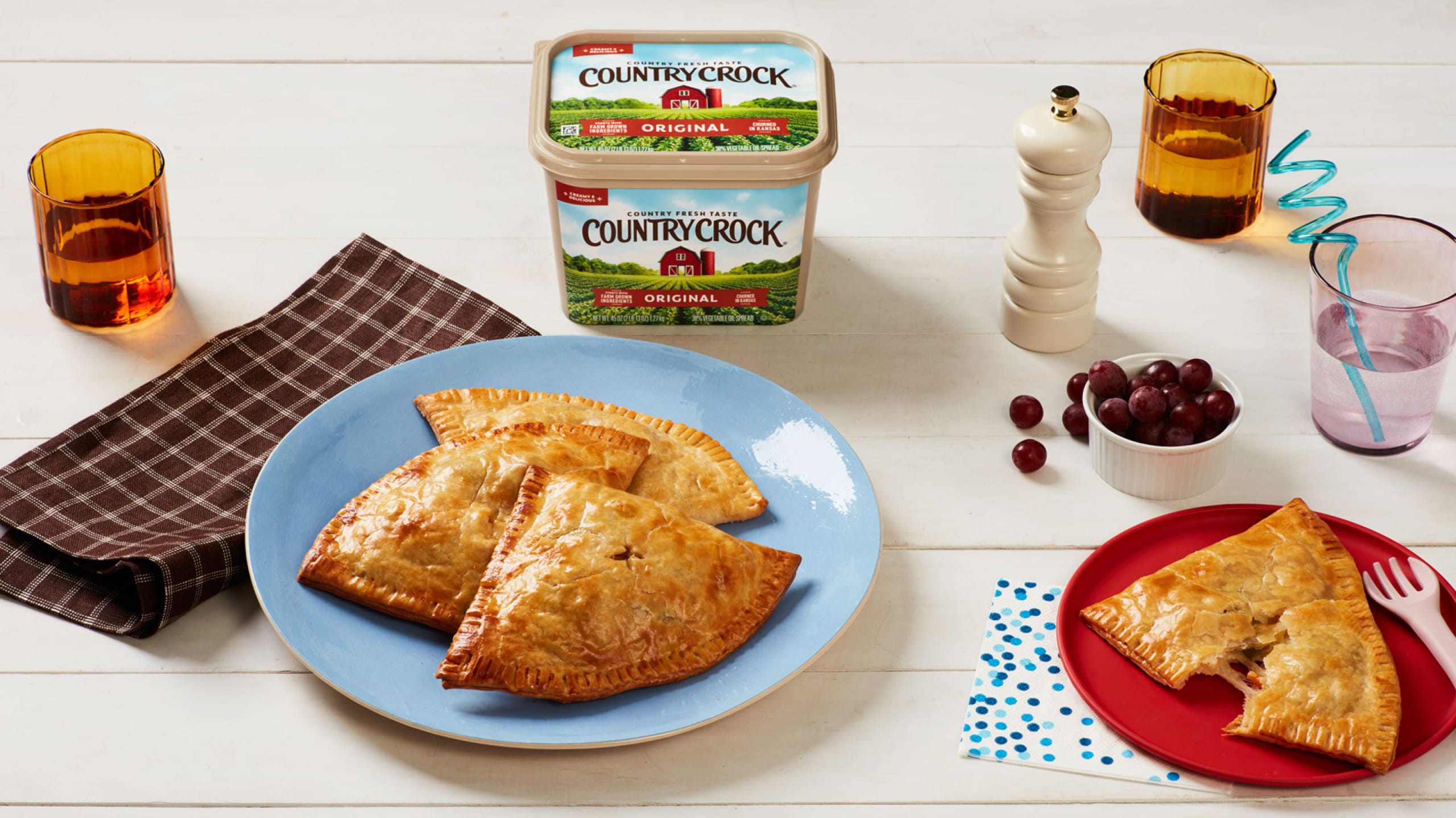 STEP 5: Brush each pie with melted Country Crock Original Spread and prick in a few places with the tip of a paring knife. Bake for 20 minutes, or until the tops are golden brown. Serve warm.