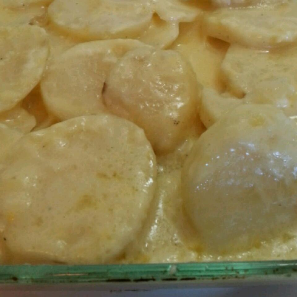 This was easy and delicious! I sliced then microwaved the potatoes for about 8 minutes to cut down on baking time. Then poured the cheese sauce over top and mixed with potato slices, then bake.