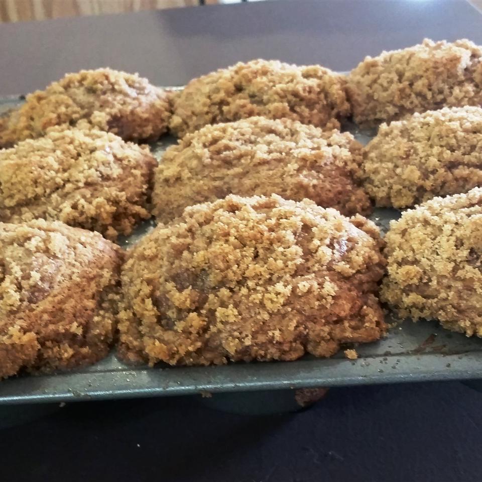 Bread Quick Bread Recipes Muffin Recipes Banana Muffin Recipes Banana Crumb Muffins 4.8 (14,593) 10,667 Reviews 2,378 Photos The best banana muffin recipes have a sweet crumb topping which is what makes these banana muffins stand apart from the ordinary. They're scrumptious! Recipe by Lisa Kreft Updated on July 14, 2022 Save Saved! View All Saved Items Rate Print Share Share Tweet Pin Email Add Photo 2,378 2,378 2,378 2,378 Prep Time: 15 mins Cook Time: 20 mins Total Time: 35 mins Servings: 10 Yield: 10 muffins Jump to Nutrition Facts Ingredients Muffins: 1 ½ cups all-purpose flour 1 teaspoon baking soda 1 teaspoon baking powder ½ teaspoon salt 3 bananas, mashed ¾ cup white sugar ⅓ cup butter, melted 1 egg, lightly beaten Crumb Topping: ⅓ cup packed brown sugar 2 tablespoons all-purpose flour ⅛ teaspoon ground cinnamon 1 tablespoon butter Directions Preheat the oven to 375 degrees F (190 degrees C). Lightly grease or line 10 muffin cups with paper liners. Prepare muffins: Mix flour, baking soda, baking powder, and salt together in a large bowl. Beat bananas, white sugar, melted butter, and egg together in a separate bowl; stir the banana mixture into the flour mixture just until combined. Spoon batter into prepared muffin cups, filling each about 3/4 full. Prepare crumb topping: Mix brown sugar, flour, and cinnamon together in a small bowl. Use a fork to mix in 1 tablespoon butter until mixture is crumbly; sprinkle topping over muffins. Bake in the preheated oven until a toothpick inserted into the center comes out clean, 18 to 20 minutes. TTV78 I Made It Print Nutrition Facts (per serving) 263 Calories 8g Fat 46g Carbs 3g Protein Show Full Nutrition Label Hide Full Nutrition Label Nutrition Facts Servings Per Recipe 10 Calories 263 % Daily Value * Total Fat 8g 10% Saturated Fat 5g 24% Cholesterol 38mg 13% Sodium 353mg 15% Total Carbohydrate 46g 17% Dietary Fiber 2g 5% Total Sugars 27g Protein 3g Vitamin C 3mg 16% Calcium 43mg 3% Iron 1mg 7% Potassium 168mg 4% * Percent Daily Values are based on a 2,000 calorie diet. Your daily values may be higher or lower depending on your calorie needs. ** Nutrient information is not available for all ingredients. Amount is based on available nutrient data. (-) Information is not currently available for this nutrient. If you are following a medically restrictive diet, please consult your doctor or registered dietitian before preparing this recipe for personal consumption. Powered by the ESHA Research Database © 2018, ESHA Research, Inc. All Rights Reserved