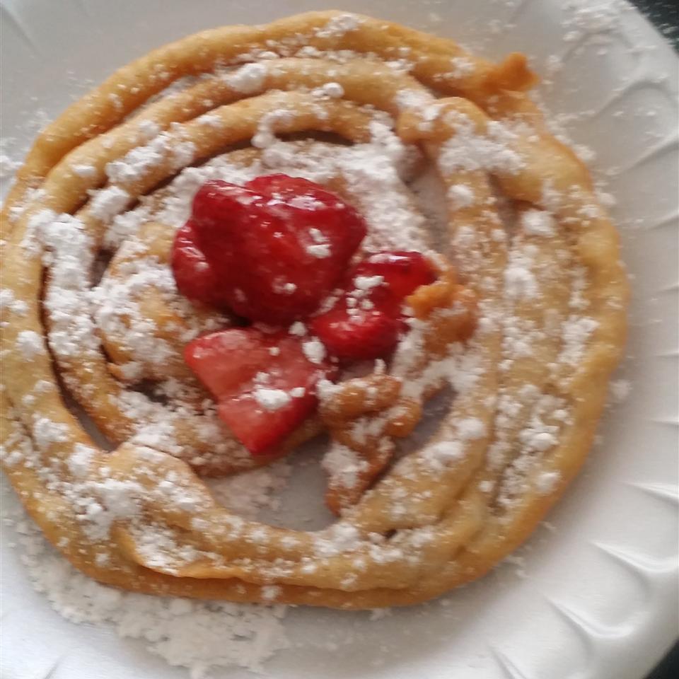 I liked this recipe because it wasn't incredibly sweet dough. I just halfed the batch which made 3 funnel cakes for us! Good job!