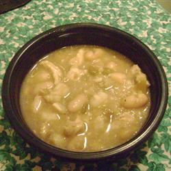 I must preface this recipe with the fact that I chose this based on a white chili that I love at a PNW taco shop. This was very close but I did make adjustments to try to duplicate the restaurant recipe. I used 3 cans of great northern beans and I pureed one of the cans to give a little thickness to the soup/chili. I also added 4 minced garlic cloves. I had no turkey so I sauteed 1 1/2 lbs of chicken breast tenderloins. I added about 1/4 teaspoon of allspice to give it some depth and added dried cilantro to taste. Left out the cheese & parsley cuz I forgot:) This is an excellent winter time recipe. Very healthy too. Thanks so much Mickie.