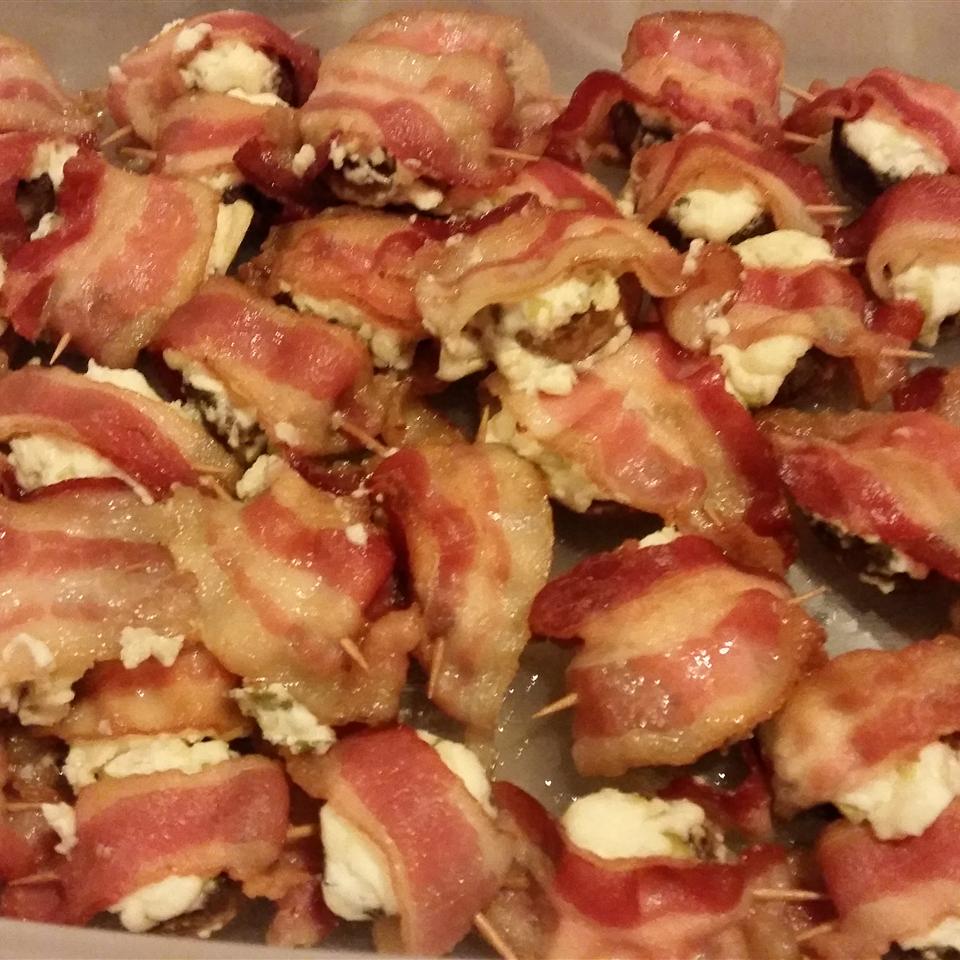 Betcha you can't eat just one! I had to make a triple batch of these for a grilling party I had this weekend. I did make a few changes: only used one package of cream cheese and then mixed in 2 cups shredded sharp cheddard cheese, mixed in minced garlic, and used whole slices of bacon that I precooked to the soft stage to make sure the bacon was crispy.