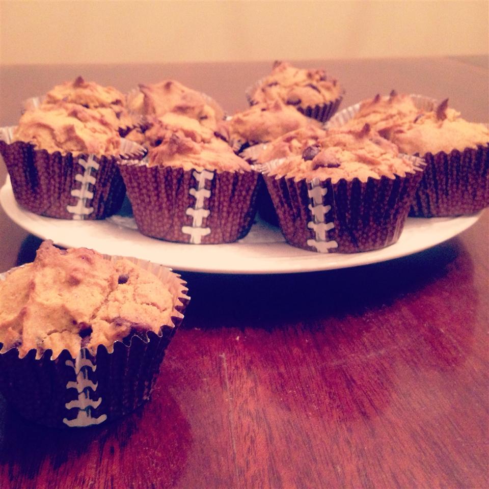 I made these and they were a big hit!! The people at the party I took them to claimed I had put an addictive substance in them :-) I used packed dark brown sugar instead of white, I used 1 cup of pumpkin instead of 3/4 cup, and I doubled the cinnamon and nutmeg. I also made them into mini muffins, so I used mini chocolate chips. cooking the minis for 15 minutes worked well.